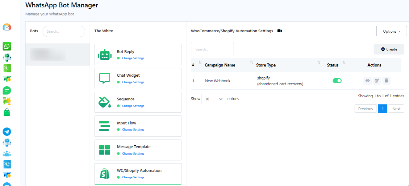 - Access the WooCommerce and Shopify Automation section in JanaBot.